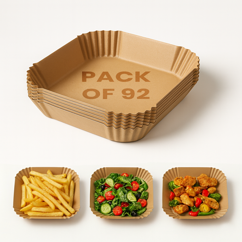 Keep your air fryer spotless with our non-stick parchment liners. These pre-cut, heat-resistant papers prevent food from sticking and stop oily messes from collecting at the bottom of your fryer. Perfect for fries, cutlets, kebabs, and baked snacks, the liners save you valuable cleaning time while protecting the longevity of your air fryer basket. With a pack of 92, you’re always stocked for quick, convenient, mess-free cooking.