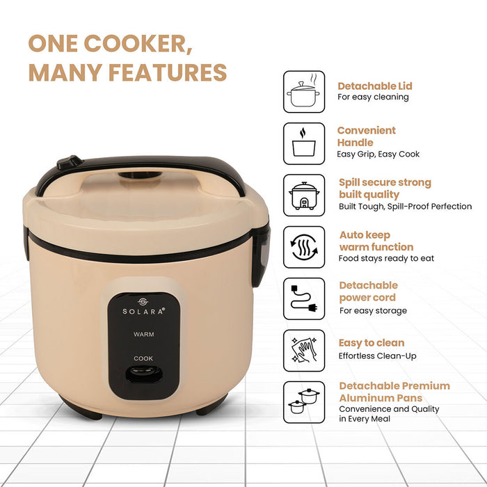 - MULTI-PURPOSE: Craving biryani, fried rice, or steamed veggies with rice - the SOLARA Electric Rice Cooker with automatic shut-off is perfect for all your healthy, tasty & awe-inspiring meals.
