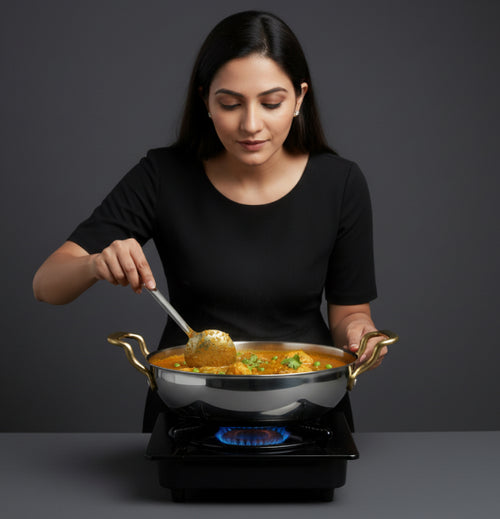 Made with 100% food-grade stainless steel — no coating, no peeling, no toxins. Your food stays pure, unreactive, and full of flavour. Safe for metal spoons. Built for daily cooking.