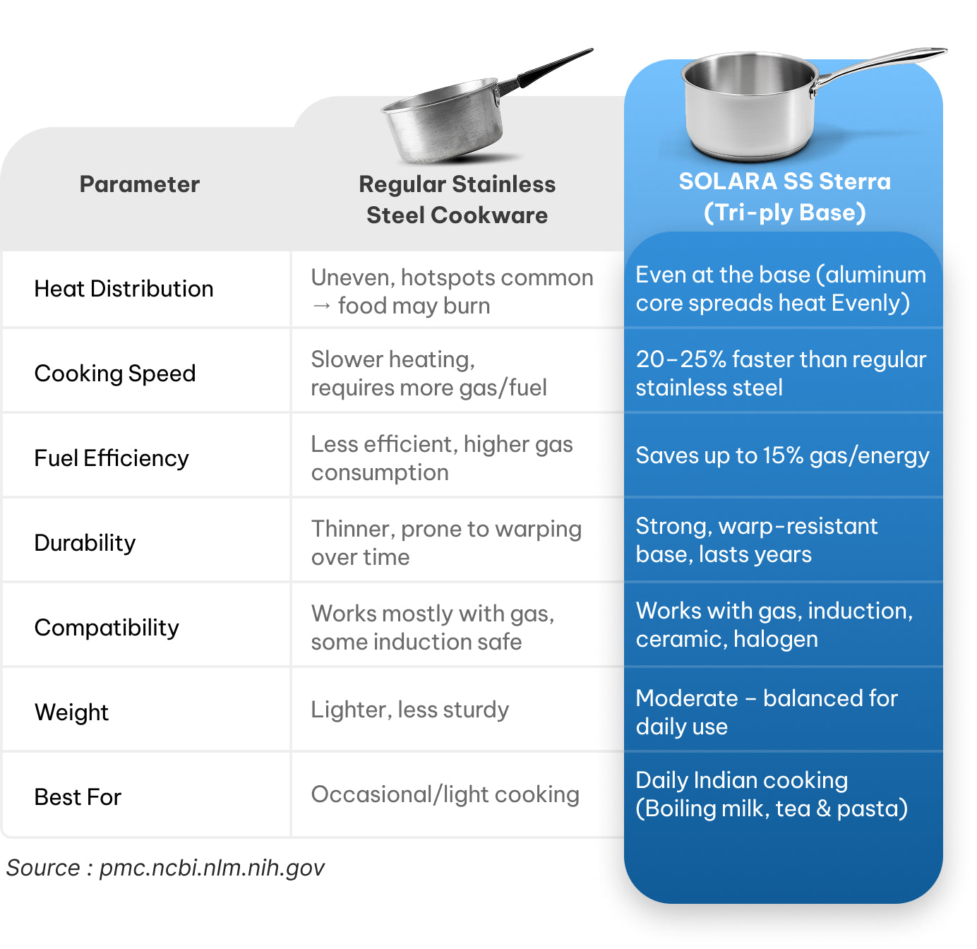 Sterra Stainless Steel Sauce Pan With Triply Bottom
