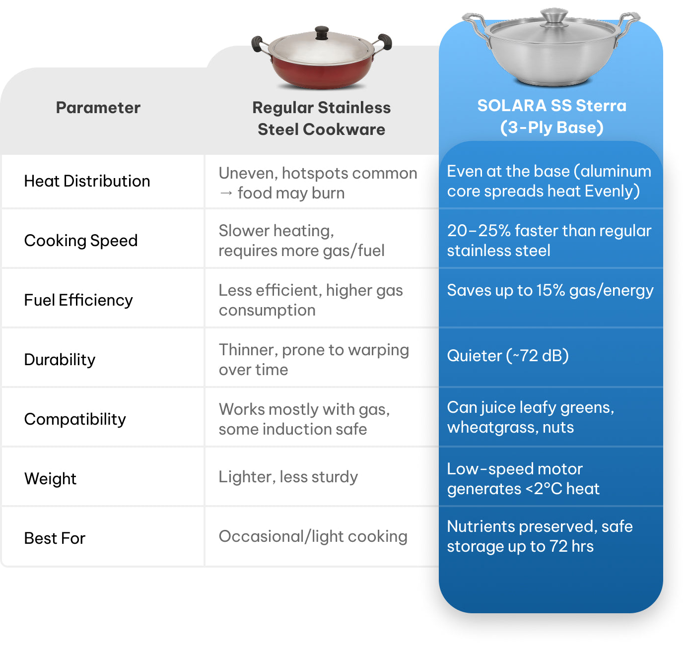 SOLARA Sterra Triply Bottom Stainless Steel Kadai, 24 cm